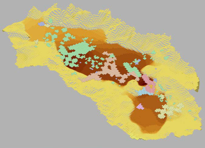 1Data are predevelopment values obtained from unpublished tabular data. Plates in report show only qualitative ranges of values
