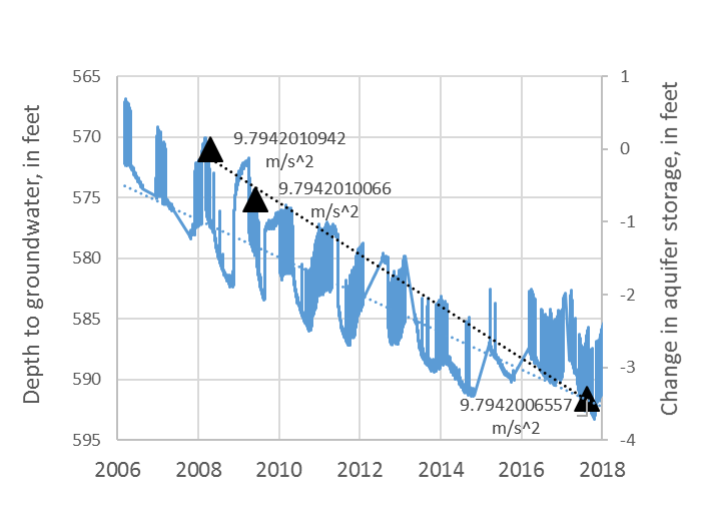 Changes in gravity are directly related to changes in aquifer-storage, regardless of aquifer porosity or depth-to-water: